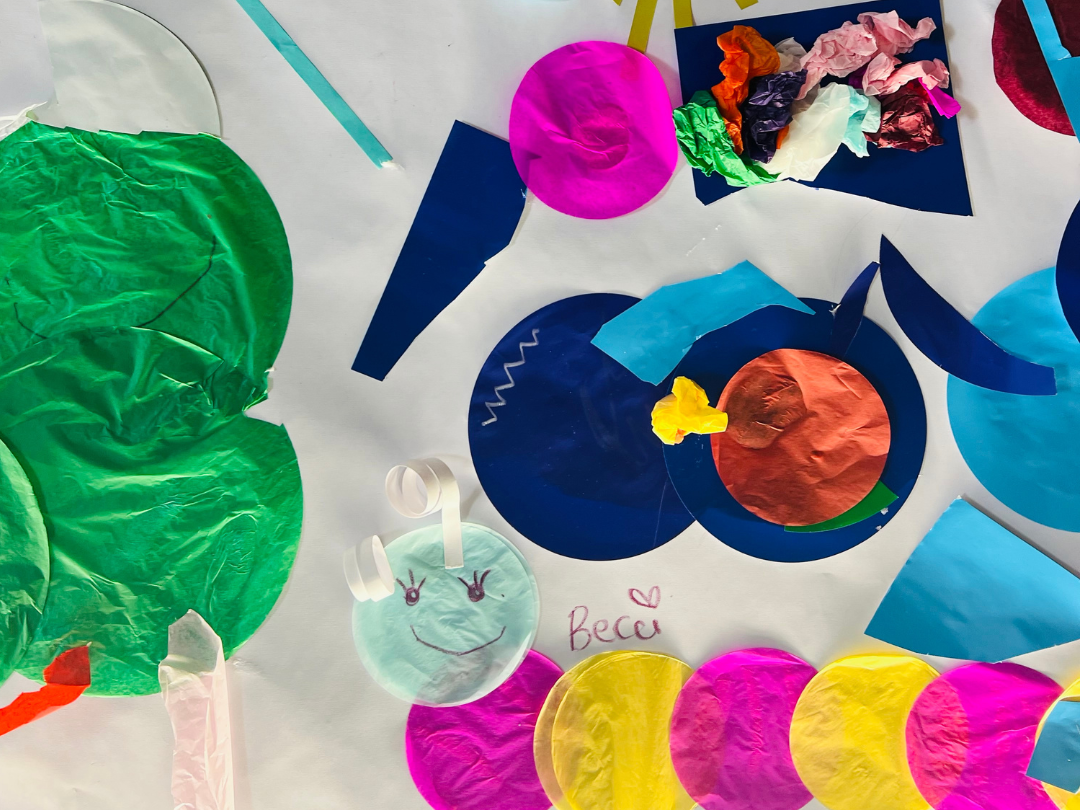 Using colourful crayons, pens, scissors and paper, we’ll cut, draw and create a patchwork of drawings and scribbles inspired by our favourite places, a special person, or something magical we want to remember. We’ll even add some sparkly crafty bits and bobs to make our artwork shine!